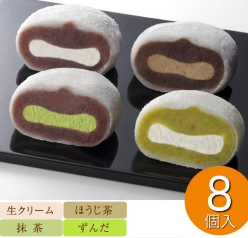 喜久水庵と呪術廻戦がコラボしていて、喜久福4種8個入りの商品がキーホルダーのおまけ付きでネット通販できます。